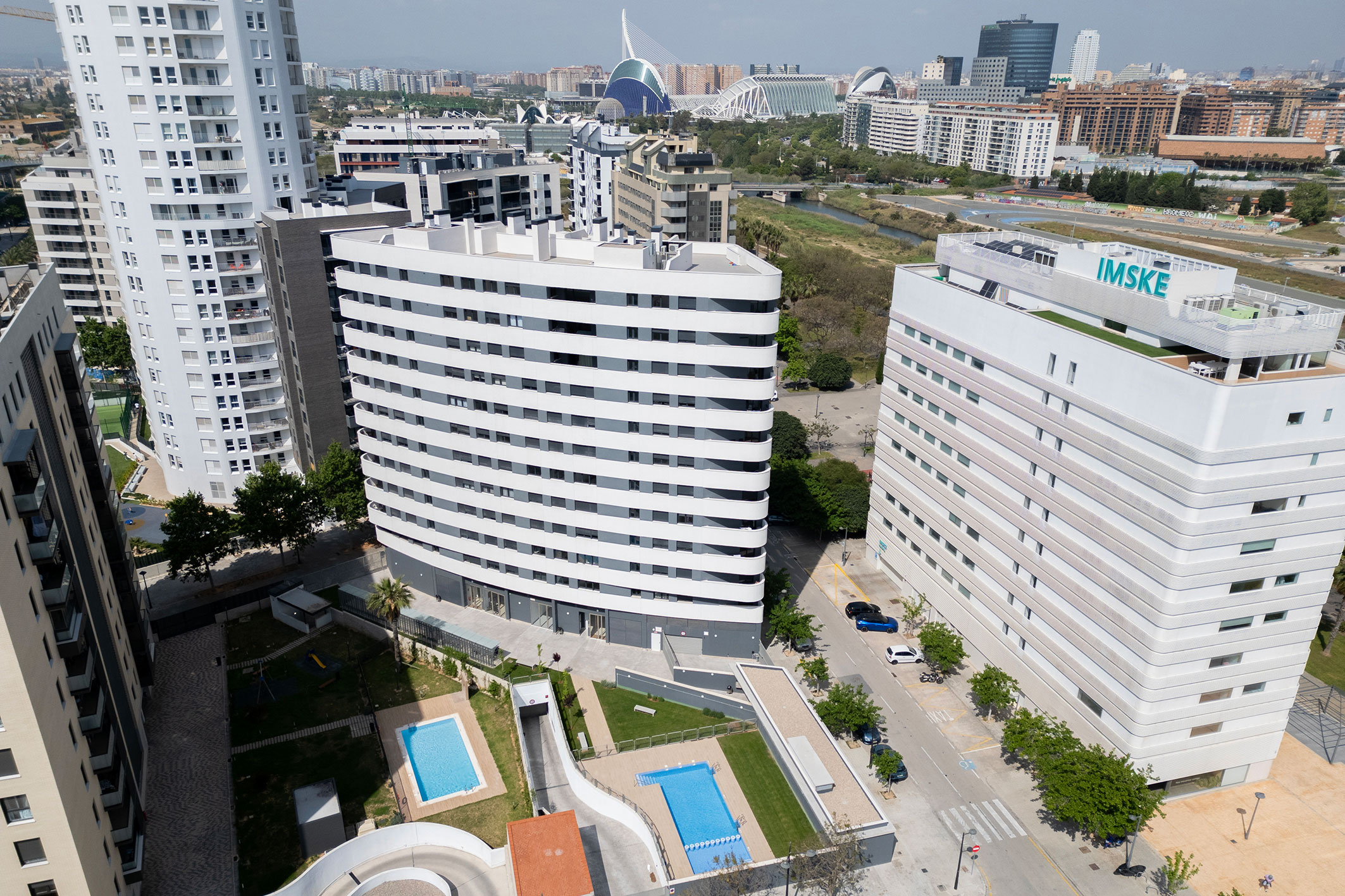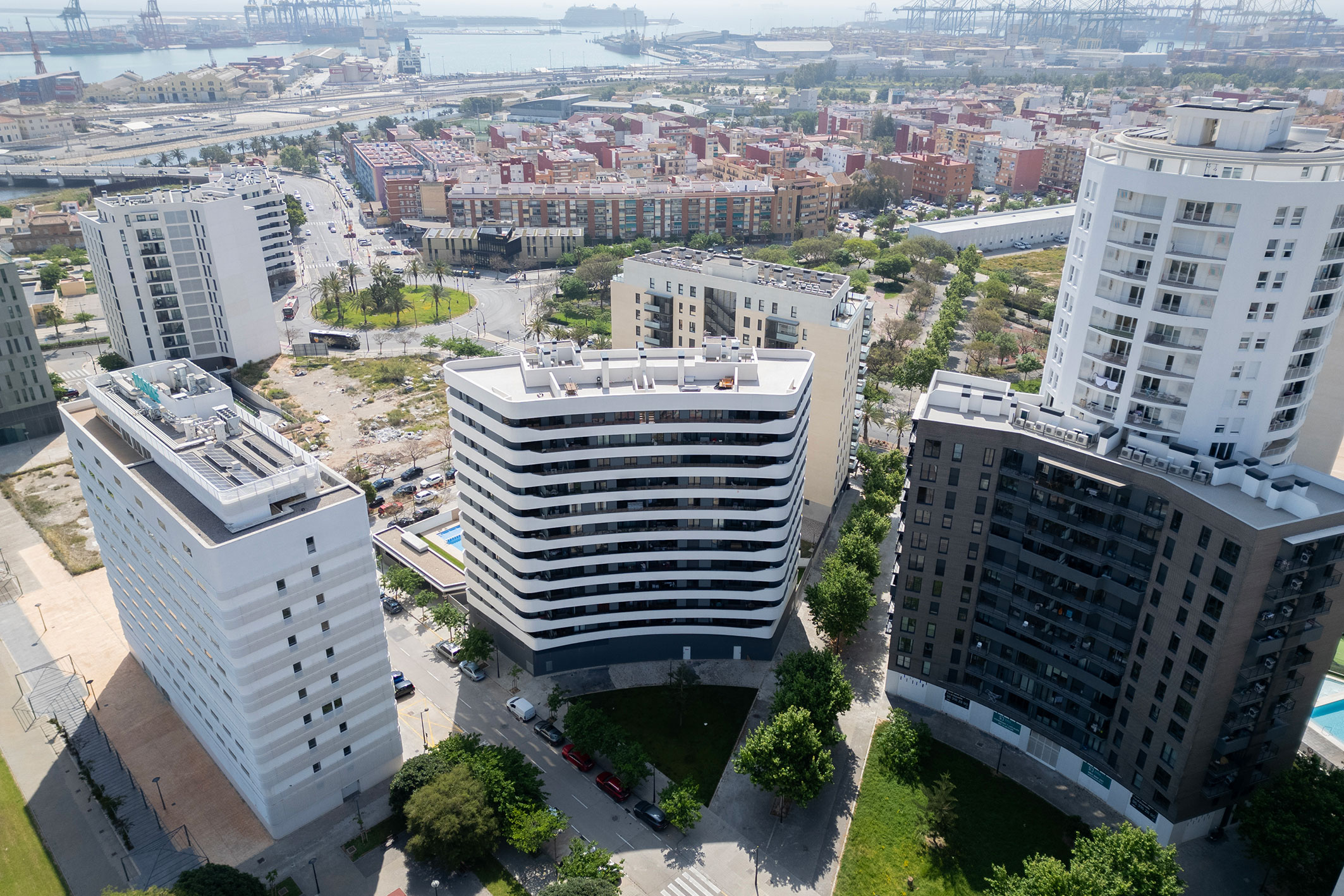 Maritim Homes es un conjunto residencial de arquitectura moderna y vanguardista distribuido en un edificio de 11 plantas de viviendas y una planta 12 de amplias terrazas.